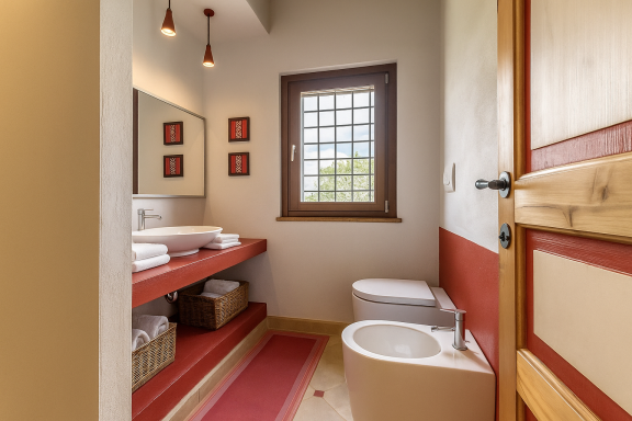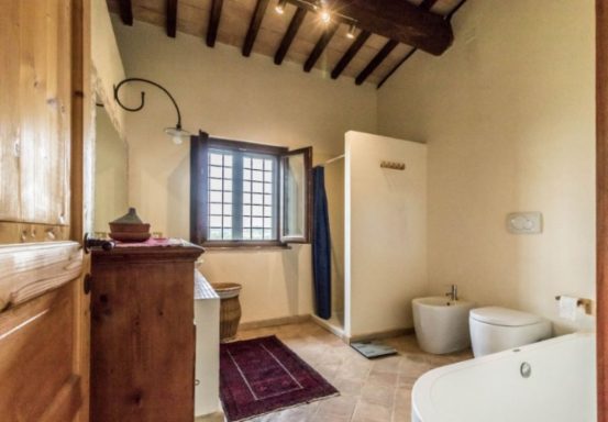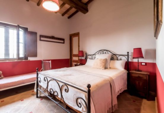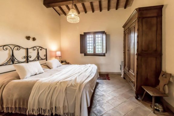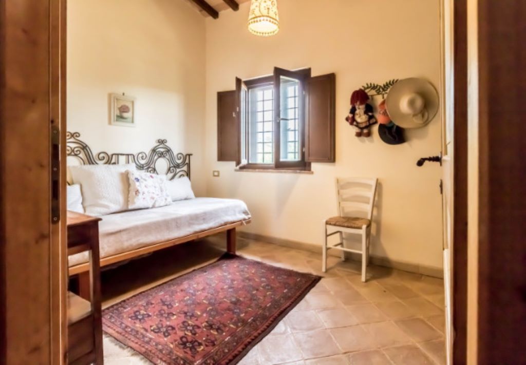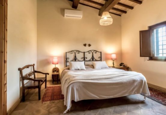 Salendo al piano superiore, si scoprono tre camere matrimoniali, ciascuna pensata come un rifugio di tranquillità. La camera patronale dispone di bagno privato, mentre le altre due camere condividono un secondo bagno, garantendo privacy e comodità. Gli ambienti, luminosi e accoglienti, combinano materiali naturali, tessuti morbidi e dettagli eleganti, creando un’atmosfera intima e raffinata, dove ogni elemento racconta la storia del casale.